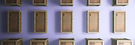A creative arrangement of stacked wooden crates against a soft, colorful background, perfect for use in design projects, advertisements, or artistic displays.