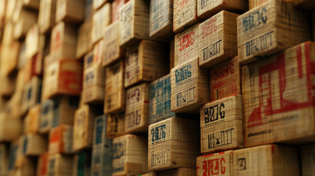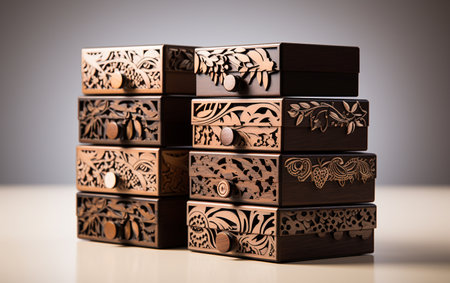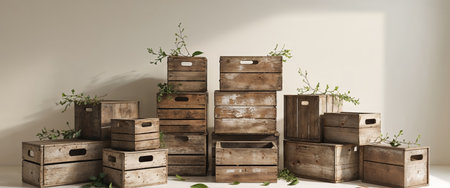 AI Generated. Stacked wooden boxes of varying sizes creating a rustic and natural aesthetic perfect for home decor and storage