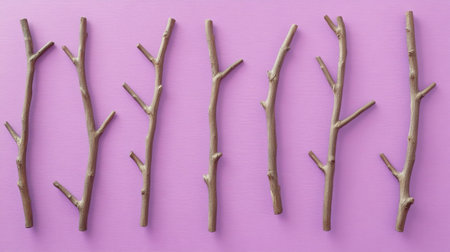 A visually appealing arrangement of twigs displayed on a vibrant pink background, perfect for showcasing natural elements in creative projects or designs.