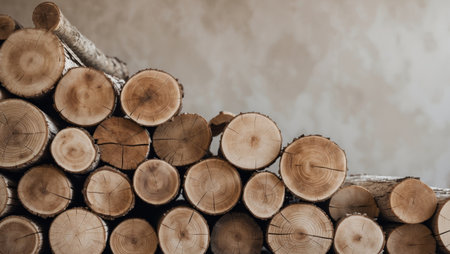 AI Generated. Stacked Cut Logs with Visible Tree Rings