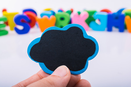 Speech bubble in hand with colorful letters behind