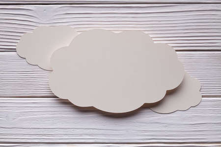 Dialog bubbles. Clouds on a wooden background