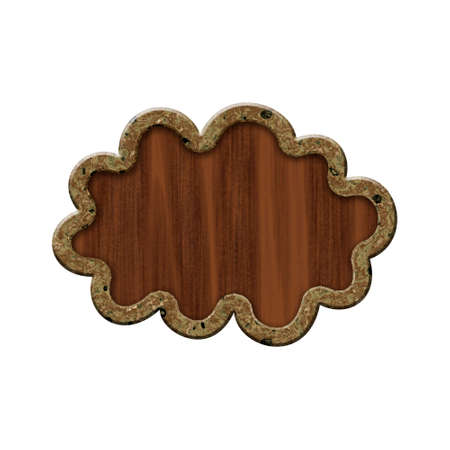 Wood badge with marbled border in form of cloud.Isolated on white background.