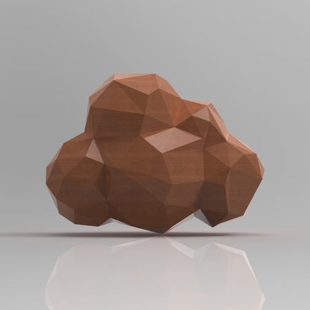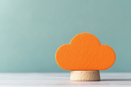 Bright orange wooden cloud symbol on minimalist background, representing creativity, technology, and innovation in a modern context
