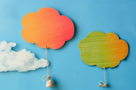 Colorful Balloon-Shaped Speech Bubbles in Bright Sky for Fun Designs and Cheerful Themes
