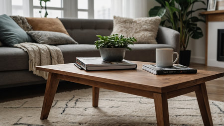 Attract Attention, a Captivating Product Display with a Coffee Table Background, Generative AI