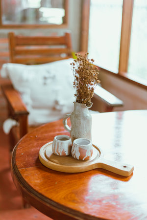 Cup of Wooden Table : Generative AI