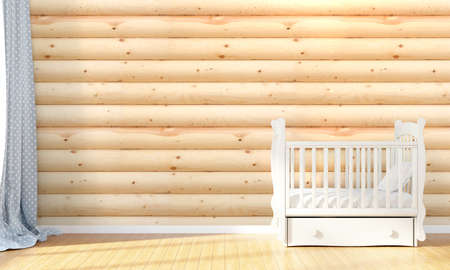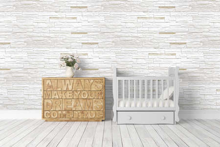 Children's room with crib and bedside table. 3d rendering