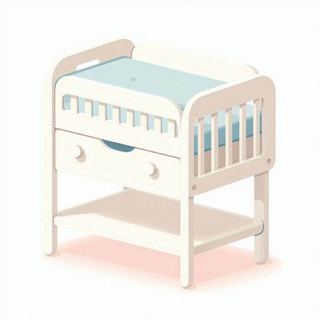 Picture of crib and small table with infant accessories