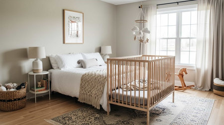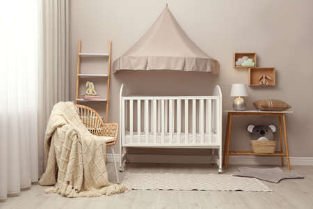 Modern baby room interior with stylish crib
