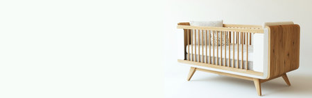 White wooden baby crib in nursery room