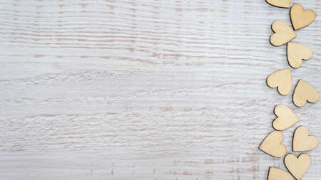 Valentines day background with Laser Cut Wooden Hearts on Neutral Craft Paper Background with Copy Paste. Rustic Love Background.
