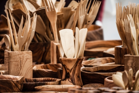cutlery olive tree wood spanish traditional fork spoon palettes kitchenware ( HDR image )