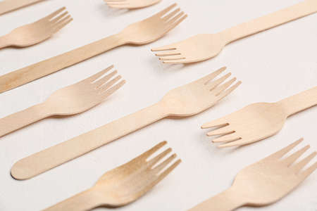 Wooden forks on light background