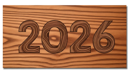 2026 numbers carved into a wooden plank with visible natural wood grain texture Clear details and...