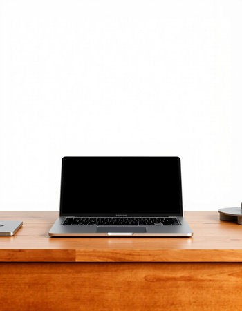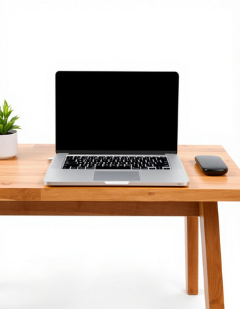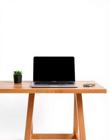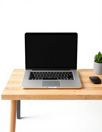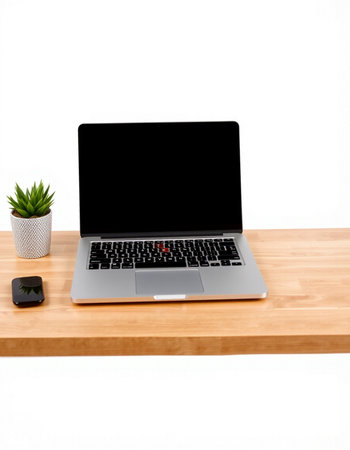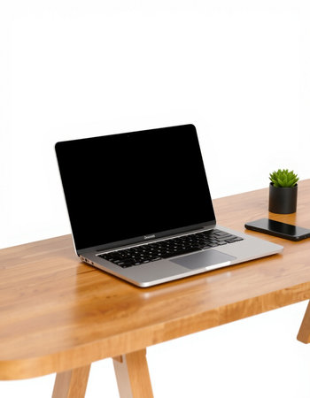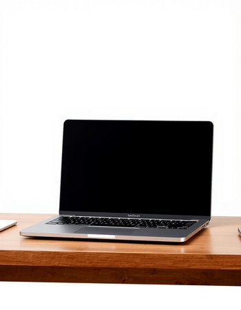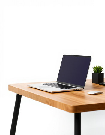 Modern workplace with blank screen laptop computer on wooden table, clipping path included