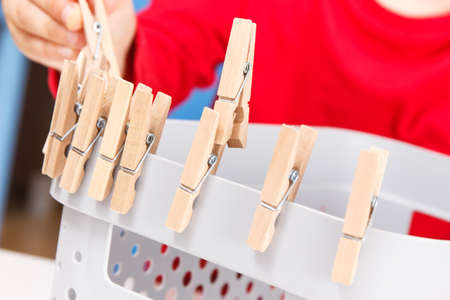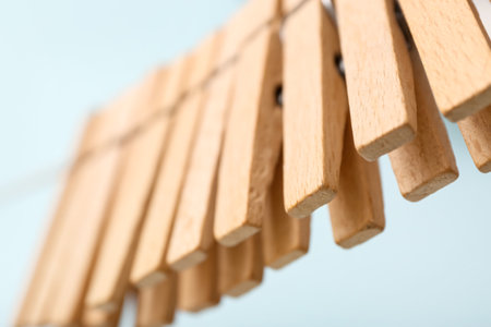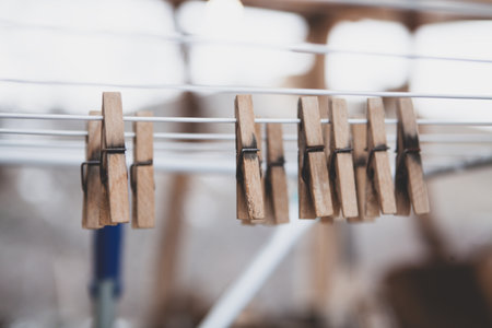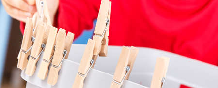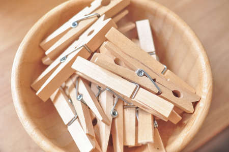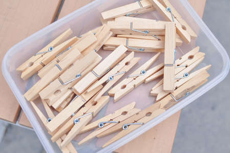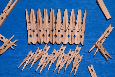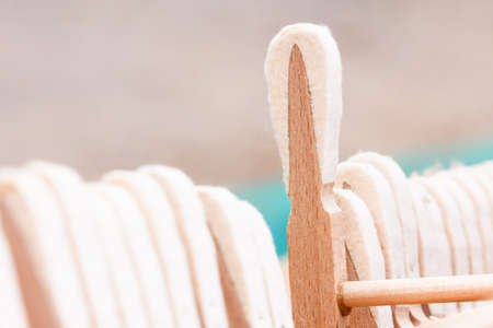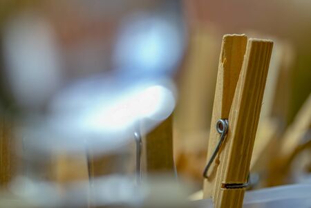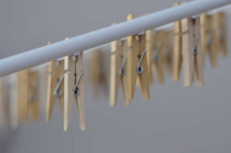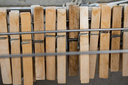 close up of wooden clothepins for tidy clothes ,equipment for chores