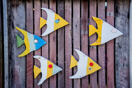 wooden fish decorations. colorful fish decorations hanging. swinging wooden fish decoration.