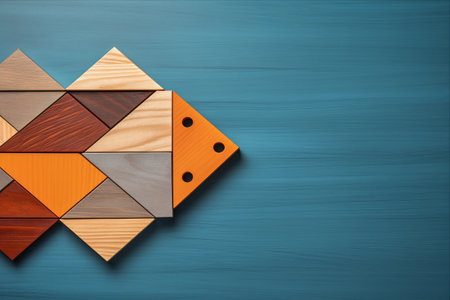 Fishing for Creativity: Exploring the Wooden Tangram Puzzle in Fish Shape with Copy Space Background --ar 3:2