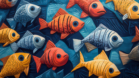 Captivating Underwater Symphony: Graceful Fish Carvings Glide in AR 3:2