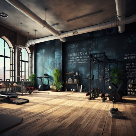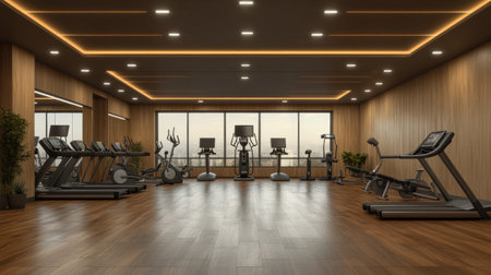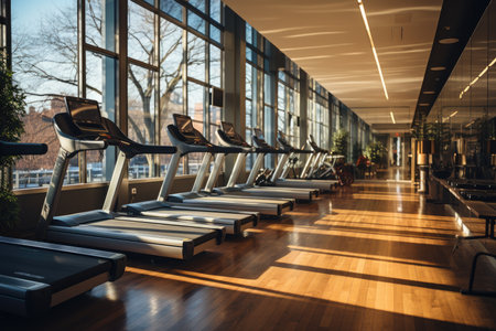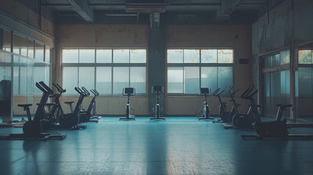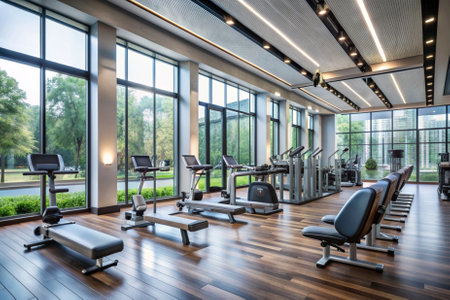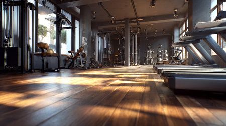 Radiant scene: Minimalist gym, students focused and aligned equipment., generative AI