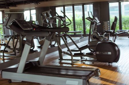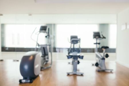 Modern gym interior with fitness equipment. Blurred background. Healthy lifestyle concept