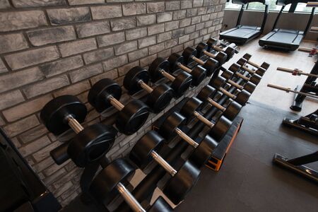 Modern gym interior with fitness equipment. horizontal composition. Toned.