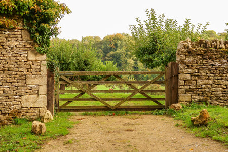 wooden fence and gate open to farm - vintage style