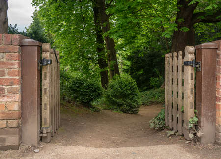 Enchanting Harmony: The Brown Wooden Gate and Green Leafed Tree