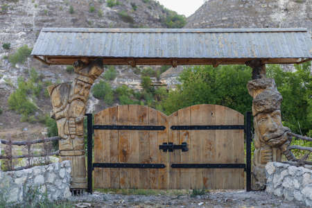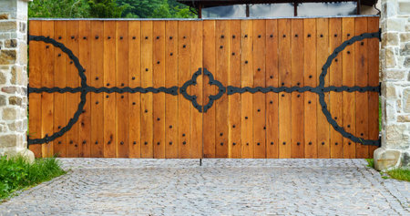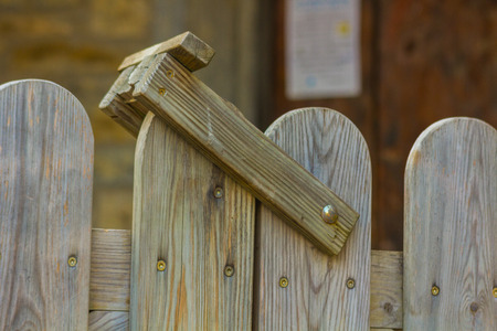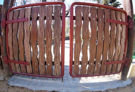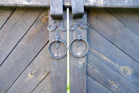 wooden gate close-up with forged elements as an object