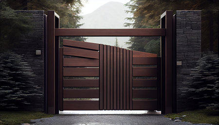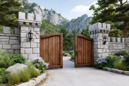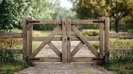 Gateway visualisation Background. Countryside wooden gates. Ai generative