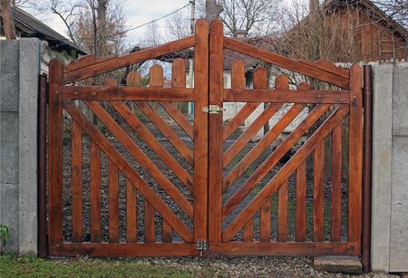 New wooden gates made of brown boards