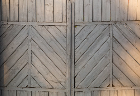 Texture, old shabby diagonal wooden planks. Fence, farm gate. Background of old boards faded in sun