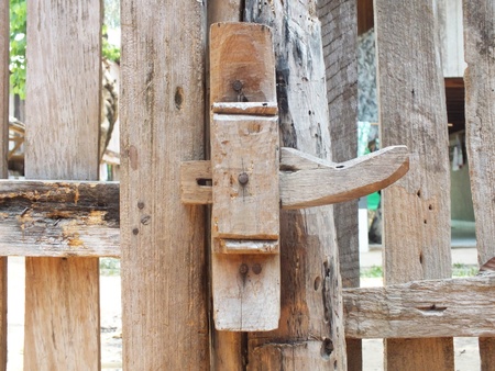 Door lock on a wooden fence