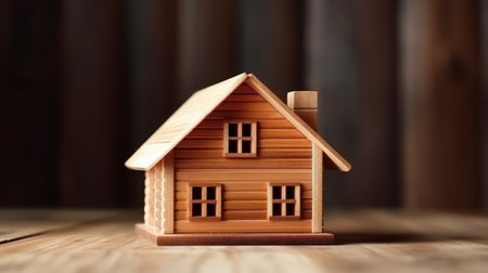 This image showcases a rustic wooden house model, beautifully crafted to evoke feelings of comfort and simplicity in minimalist design. Perfect for various creative uses.