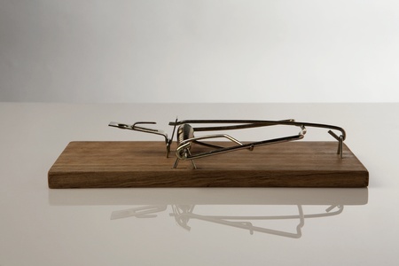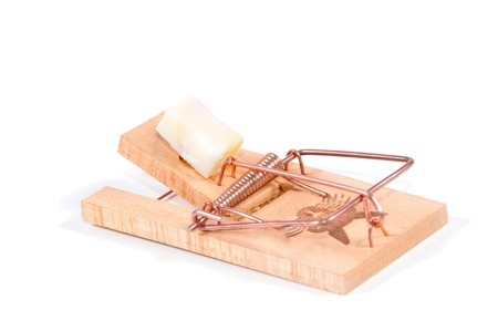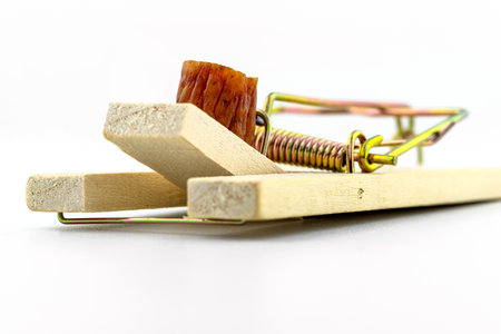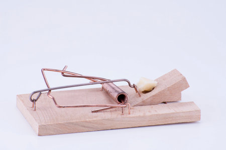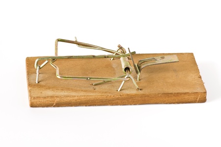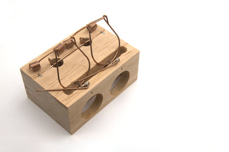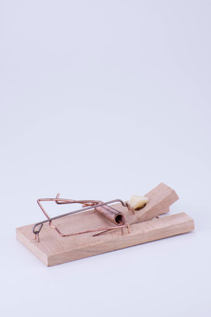 Rat trap on a white background, can be used as a concept for business, risk, loans, metaphor, with copy space.
