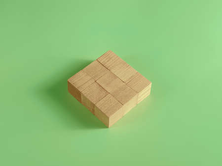 Arranged wood cube stacking as shape, mock up for create symbol or logo, business growth and management concept.