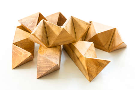 Wooden puzzle isolated on a white background.