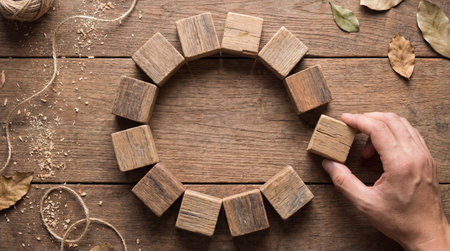 Wooden blocks in the form of a circle on a wooden background