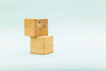 Wooden cubes from natural wood on a white background. Copy, empty space for text.