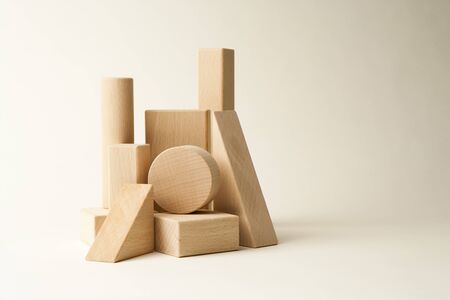 Wooden building blocks isolated on white background.