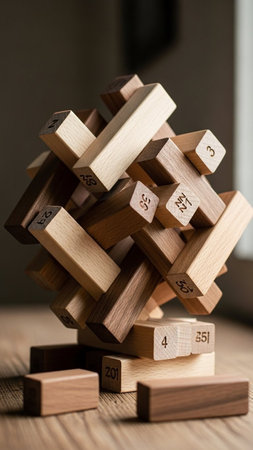 Wooden blocks stacked on top of each other on a wooden table