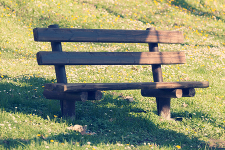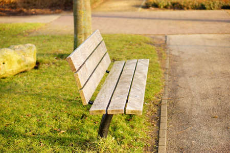 Relaxing bench by the park grass