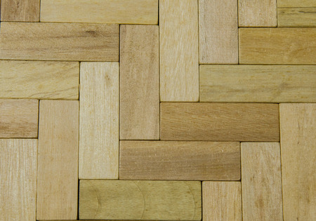 Close-up natural ecological unpainted light wooden background with mosaik wood pattern for design and decoration