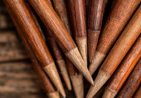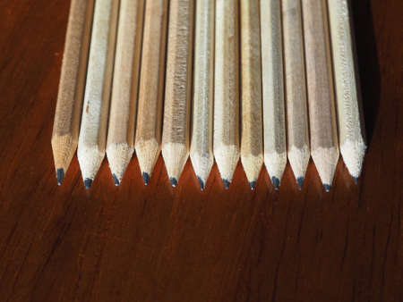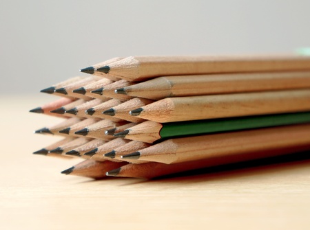 Many wooden pencils on a desk top
