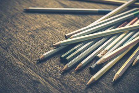 Pencils on wood table, retro color style