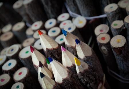 multiple pencil color arrang as a crown on the wood block