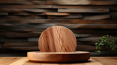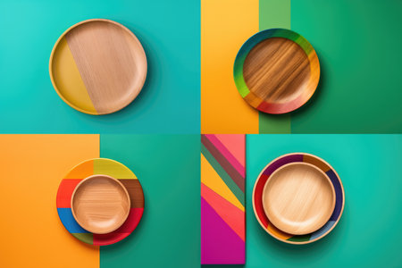 Color Wood Plate Mock Up, Empty Dishware Mockup with Copy Space for Text Top View, Generative AI Illustration