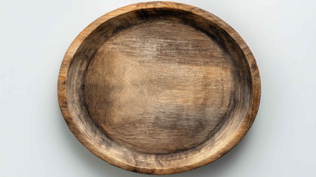 Top View of Wooden Circle Plate Isolated. Generative AI. High quality illustration
