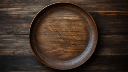 Close-up view of a handcrafted timber plate, with a focus on its rustic texture and hand-finished charm.. AI generated.